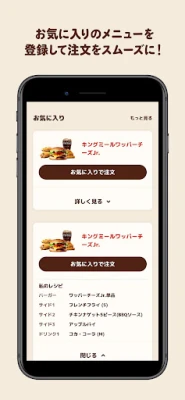好きなメニューやカスタマイズをお気に入りに登録しておけば、次回以降の注文がより簡単になります。
