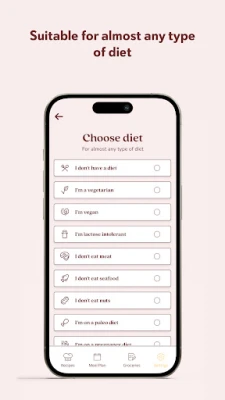 - Diet and lifestyle customization – Adjust meal frequency, choose your diet type, and exclude allergens or disliked foods.