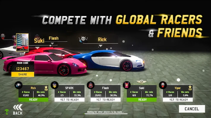 Race with Friends in stunning super-cars at high speed to beat the traffic!