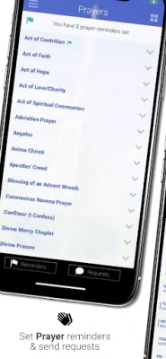 • Prayers – Full list of traditional Catholic prayers with the ability to set reminders for any of them or your own daily prayer time. Also submit prayer requests to your parish.