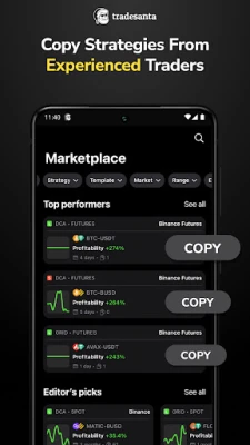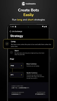 Set up a crypto bot and save your time by automating the crypto trading routine with TradeSanta. Connect TradeSanta automated crypto trading platform to your exchange and manage your bots right from the smartphone.